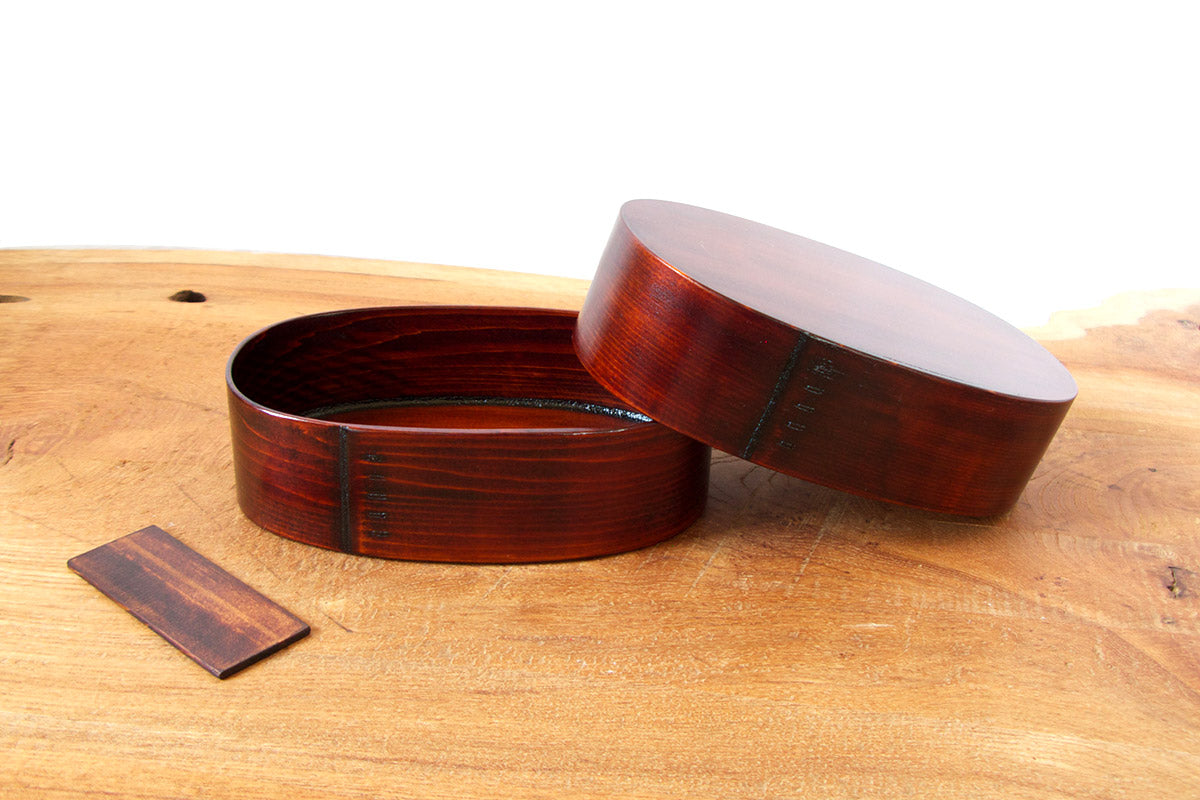 摺り漆 曲げわっぱ 弁当箱(楕円中)